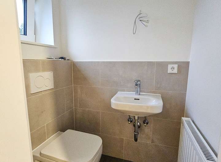 • Modernes Tageslichtbad mit Dusche im Obergeschoss, separates WC im Erdgeschoss
