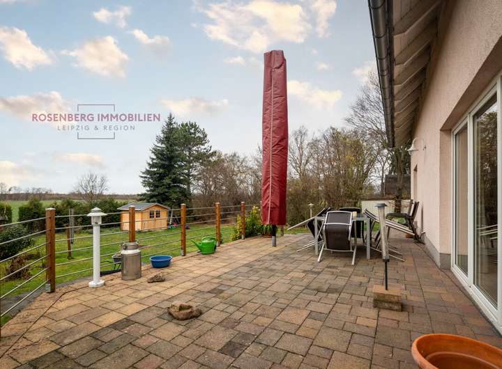 - großzügige Terrasse mit Blick in den Garten
