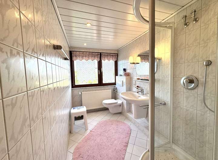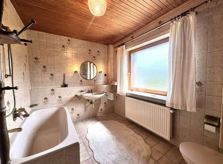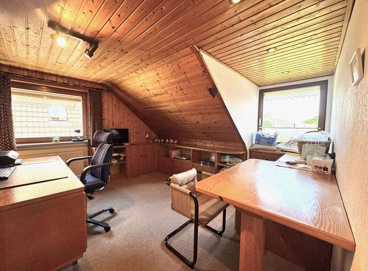 Das Haus hat im Erdgeschoss einen einladenden Eingangsbereich mit Windfang, eine Wohnküche, ein großes Wohnzimmer mit separatem Esszimmer und ein Bad. Im Obergeschoss gibt es drei Schlafzimmer und ein im Jahre 1993 eingebautes Duschbad. Der Spitzboden bietet Abstellfläche für Ihre nicht so oft benötigte Dinge.