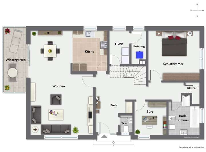 Wintergarten, Doppelgarage mit elektr. Sektionaltor (2016 ca.) und sep. Fahrradraum, Brennwertheizung, Balkon-Logia, Fußbodenheizung,