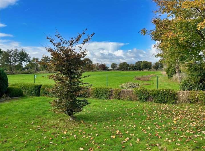 Das pflegeleichte Grundstück ist größtenteils mit Rasenflächen angelegt. Eine Garage nebst Sommergarten und separatem Abstellraum bietet Platz für PKW, Fahrräder und Gartengeräte. Die zur Südwest-Seite ausgerichtete Dachfläche bietet sich ideal für eine Photovoltaikanlage an. Besonders hervorzuheben ist der unverbaubare Blick üben Wiesen und Felder. Genießen Sie hier auf Ihrer Terrasse den Sonnenuntergang.