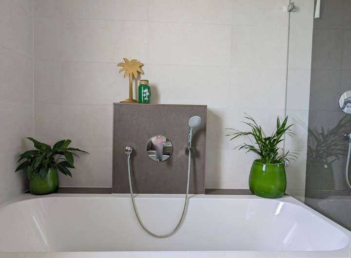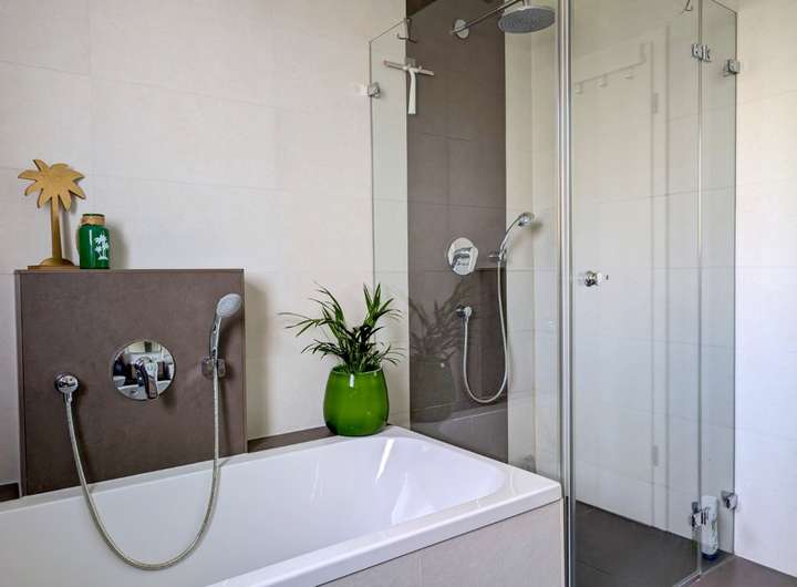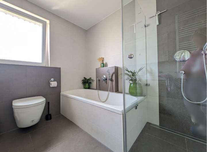° Wände in Bad und Gäste-WC deckenhoch gefliest