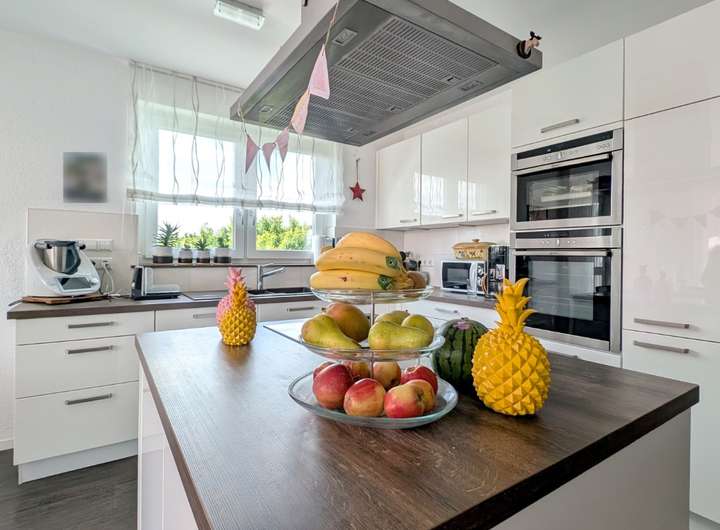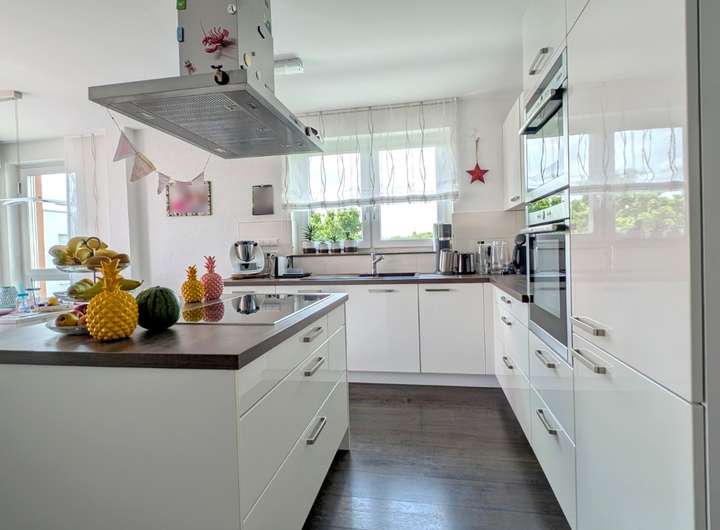Das Herzstück eines jeden Zuhauses ist die Küche. So auch hier: die perfekt platzierte Kochinsel in der modernen, offen gestalteten Einbauküche ermöglicht einen Rundumblick zwischen Wohnraum, Essbereich und Sonnenterrasse. Es ist der perfekte Ort, um Freunde und Familie zu bewirten und gemeinsam unvergessliche Momente zu erleben.