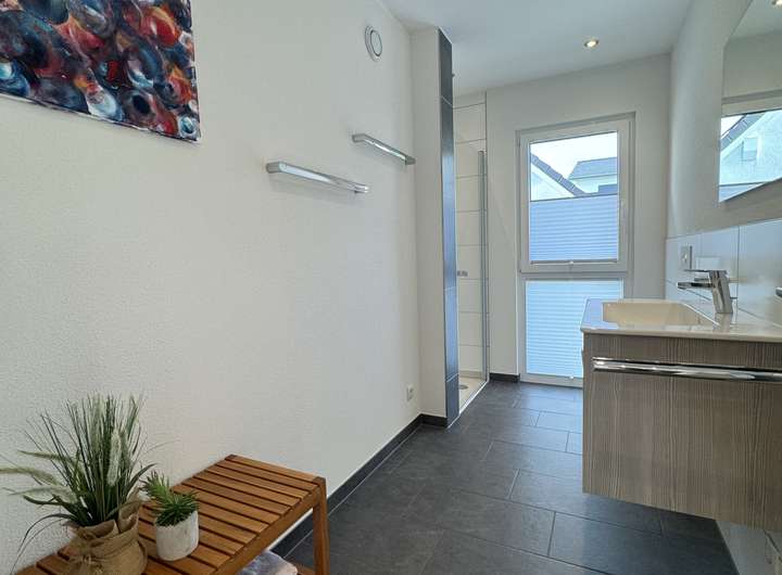 • Fußbodenheizung in allen Räumen separat steuerbar. Fußbodenkühlung im Sommer in allen Räumen separat steuerbar