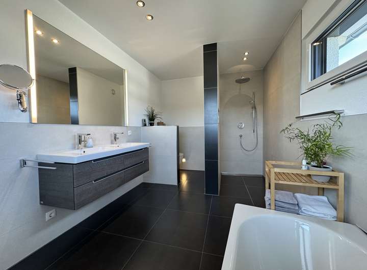 • PV-Anlage (Dach) mit 7,7 kw Leistung und separatem Batteriespeicher (Autarkie bei ca. 45 % im Jahr)