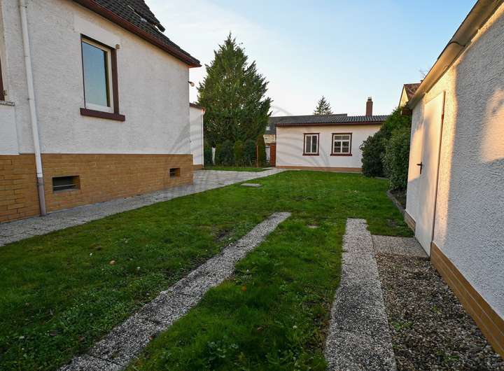 Das 510 m² große Grundstück ist ein weiteres Argument, das für dieses Objekt spricht. Die clevere Anordnung der Gebäude schafft geschützte Gartenbereiche und ausreichend Freifläche für individuelle Gestaltung: vom gemütlichen Sitzplatz über Spielbereiche bis hin zum üppigen Nutz- oder Ziergarten. Hier lässt sich ein Außenraum schaffen, der den Charakter des Hauses auf wunderbare Weise ergänzt.