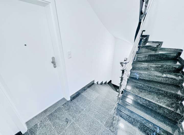 Die Ausstattung umfasst eine effiziente Luft-Wärmepumpe der Klasse A+, eine durchdachte Aufsparren- und Zwischensparrendämmung sowie ein elegantes Treppenhaus mit Granitbelag und Edelstahlgeländer. Im Erdgeschoss wurde ein hochwertiger Holzoptik-Boden verlegt, während in allen oberen Etagen edler Parkettboden für eine warme Wohnatmosphäre sorgt.