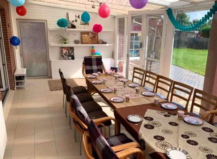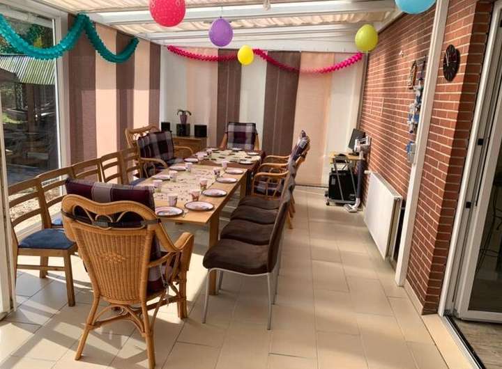 Der angrenzende ca. 28 m² große Wintergarten bietet einen schönen Blick in den weitläufigen Garten und sorgt das ganze Jahr über für ein helles, freundliches Wohngefühl.