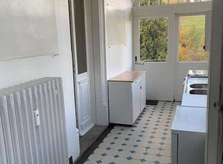 Das Dachgeschoss beherbergt eine renovierte eigenständige Wohnung mit vier Zimmern, einer Wohnküche, einem Badezimmer und einer separaten Toilette mit ca. 125m2 Wohnfläche, welche separat vermietet wird. Eine Wendeltreppe im Türmchen bietet einen separaten Zugang zur Dachgeschosswohnung.
