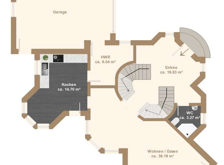 + repräsentativer Empfangsbereich mit eindrucksvoller Doppeltreppe