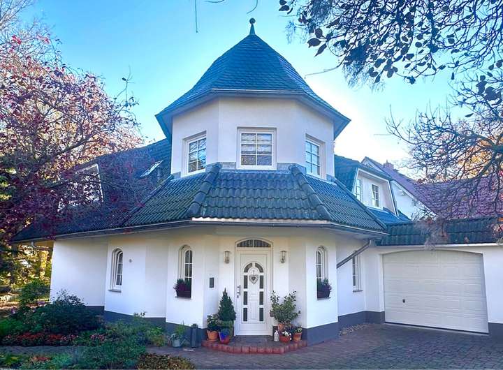+ Massiv errichtete Villa mit markantem Türmchenelement