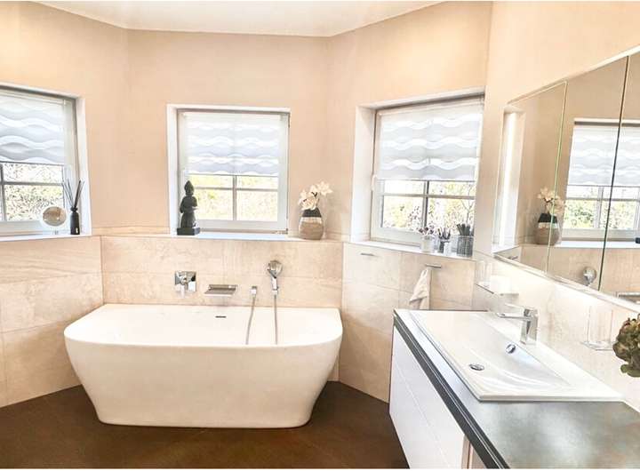 Komfort bietet die Villa durch Fußbodenheizung, Gaszentralheizung, elektrische Jalousien, eine hochwertige Einbauküche und einen erstklassig gepflegten Gesamtzustand.