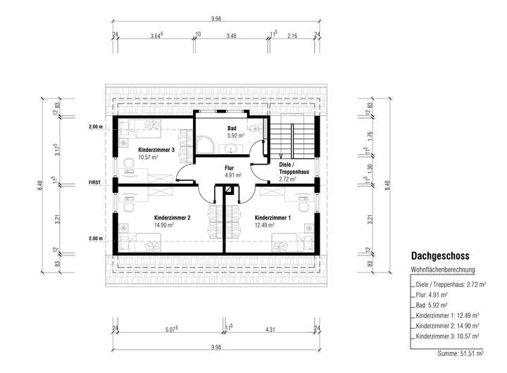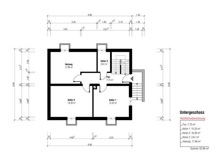 Im Inneren des Hauses erwarten Sie insgesamt 4 Schlafzimmer, 2 Badezimmer und 4 Zimmer insgesamt. Das Dachgeschoss bietet mit einer Fläche von 51.51 m² zusätzlichen Raum für individuelle Gestaltungsmöglichkeiten. Der Keller mit einer Fläche von 62.86 m² bietet weiteren Stauraum und Möglichkeiten zur Nutzung.