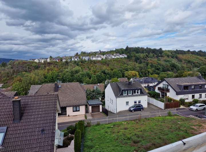 Der Balkon mit 180°-Panoramablick über das grüne Umland von Konz ist ein echtes Highlight – er ist von zwei Zimmern aus begehbar und bietet eine hervorragende Aussicht.