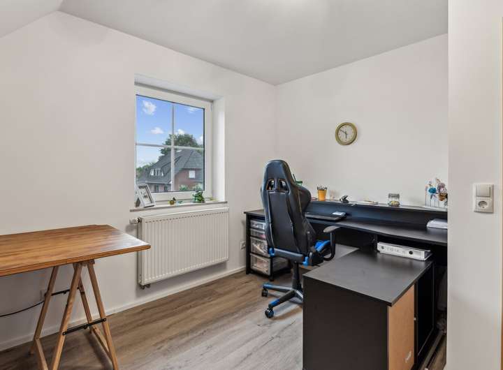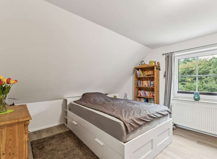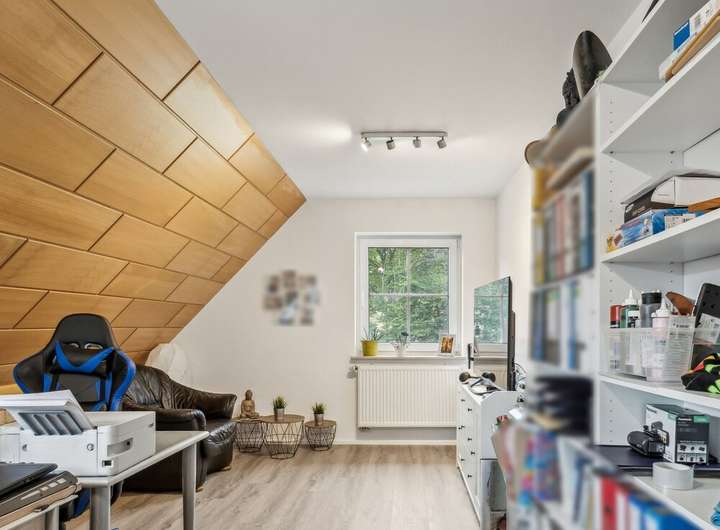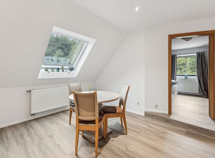 Im Jahr 2023 erfolgte eine umfassende Erweiterung des Dachgeschosses. In diesem Zuge wurden ein neues Badezimmer, moderne Bodenbeläge und eine neue Küche integriert sowie die Heizungsanlage erweitert. Zusätzlich wurde die Elektrik im Obergeschoss vollständig erneuert, und es wurden neue Velux-Fenster (2023) eingebaut, die den Bereich besonders hell und freundlich erscheinen lassen. Auch die Treppe zum Spitzboden wurde 2023 neu errichtet, wodurch dieser zusätzliche Stauraum nun bequem zugänglich ist. Insgesamt verleiht die Sanierung dem oberen Wohnbereich einen zeitgemäßen, hellen und einladenden Charakter. Zudem steht ein geräumiger Spitzboden zur Verfügung, der praktischen Stauraum bietet.