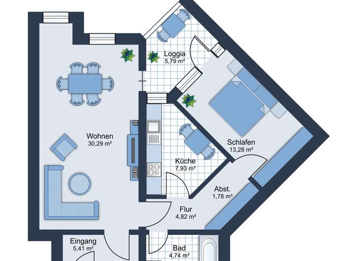 Betreten Sie das großzügige Wohnzimmer mit ca. 31 m² und genießen Sie die frische Luft auf der einladenden Loggia, die sowohl vom Wohnzimmer als auch vom Schlafzimmer zugänglich ist. Die Einbauküche ist komplett mit allen Geräten ausgestattet und wird zur Nutzung überlassen.