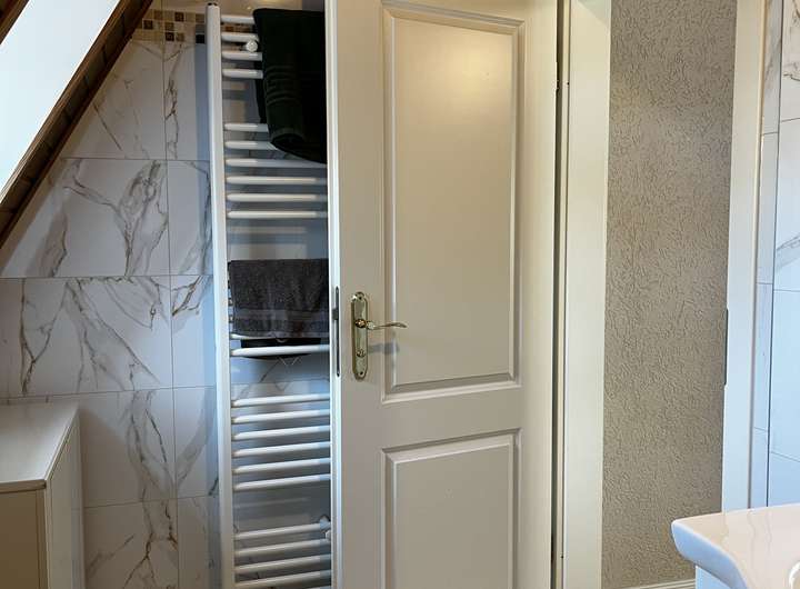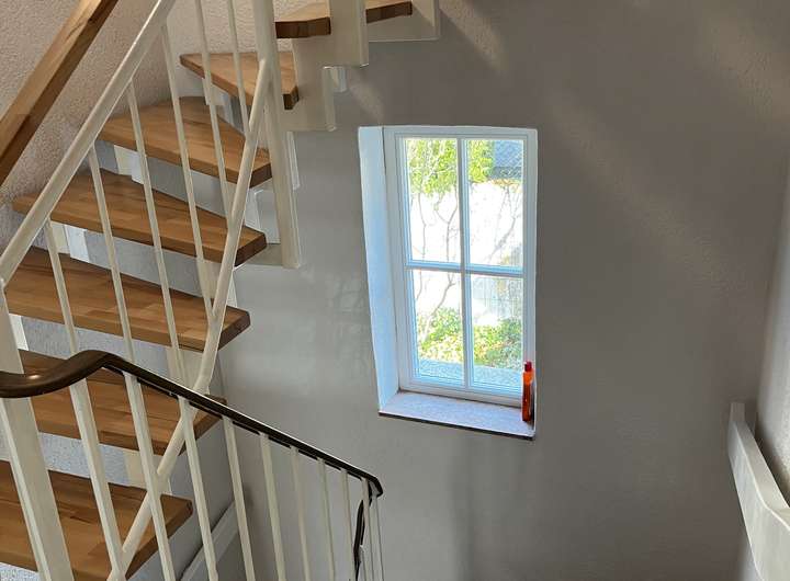 Im 1.EG gibt ein neu renoviertes Badezimmer mit Dusche und WC und ein Abstell- bzw. Garderobenraum.