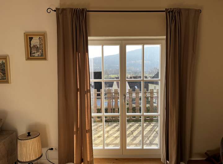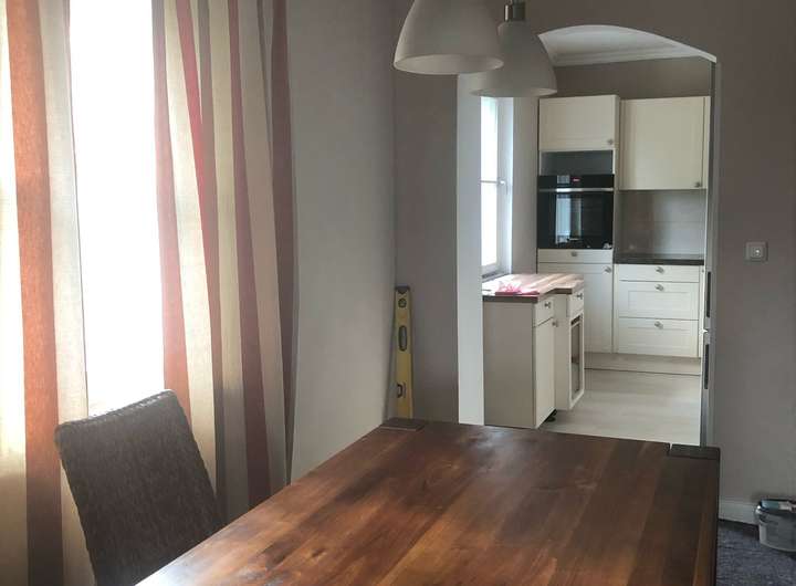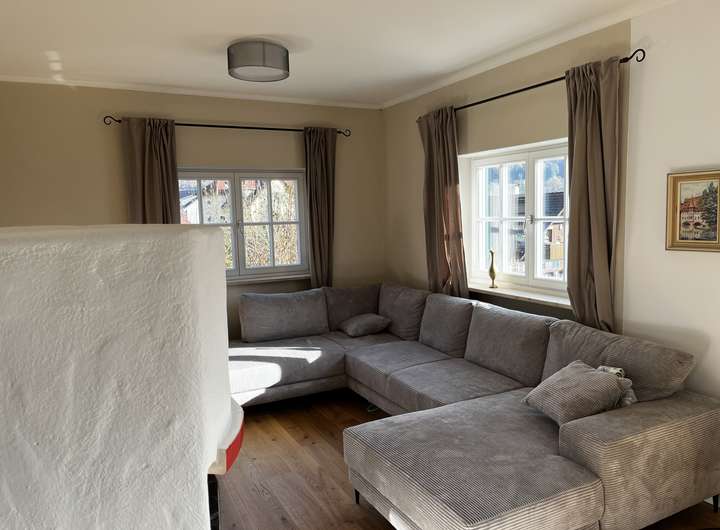 Im EG befindet sich die voll ausgestattete und renovierte Küche mit neuen Geräten, die möblierten Esszimmer und Wohnzimmer mit Holzofen, Badezimmer mit Badewanne und WC (komplett neu renoviert) und einem Zusatzzimmer (kann als Kinderzimmer, etc.) dienen . Im Wohnzimmer gibt es ein ca. 8 m² großen Balkon.