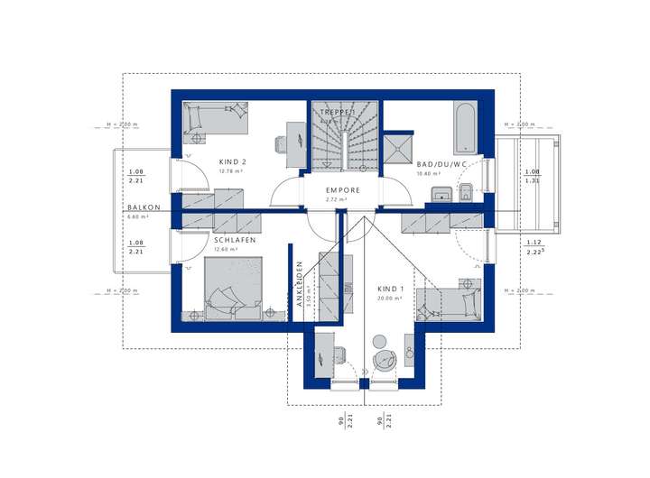 Komfort wird in diesem Haus großgeschrieben. Neben der offenen Wohnatmosphäre profitieren Sie von weiteren Highlights wie einem großen Balkon oder einer Terrasse, die zum Verweilen im Freien einladen. Ob für entspannende Nachmittage mit einem guten Buch oder gesellige Grillabende mit Freunden - Ihre Außenflächen bieten die perfekte Ergänzung zum Innenleben. Zudem sorgt der technische Innenausbau, den wir übernehmen, für einen hohen Wohnkomfort, während Sie selbst kreative Akzente setzen können.