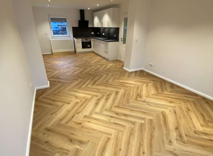 Die Wohnung ist mit Hochwertigem pflegeleichten Vinyl in Fischgrätenmuster ausgestattet, die eine angenehme Wohnatmosphäre schaffen. Der Garten steht zur gemeinschaftlichen Nutzung zur Verfügung und lädt zum Verweilen im Grünen ein.