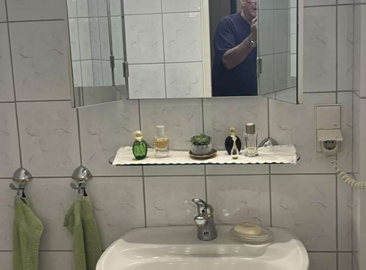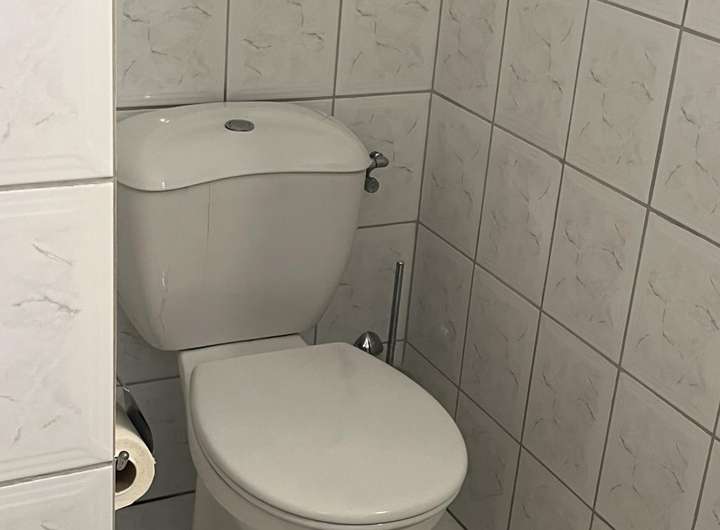 Die offen gehaltene Küche kann mit übernommen werden, ist aber kein muss, Sie ist bereits älter und kann auf Wunsch entfernt werden. Das Bad im DG verfügt über eine Wanne sowie einer Dusche, zusätzlich gibt es hier 2 Säulenwaschtische, so dass sich 2 Personen gleichzeitige für den Tag herrichten könnten. Durch 2 Dachflächen Veluxfenster bekommt auch das Badezimmer sehr viel Tageslicht. Ein WC und ein Bidet vervollständigen das Bad. Im EG ist ein Gäste Bad mit Waschtisch und WC, alle Sanitärgegenstände stammen aus dem Ursprungsbaujahr.
