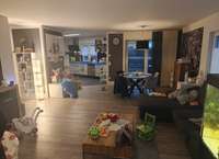 Der großzügige Wohn- und Essbereich mit offener Raumgestaltung bildet das Herzstück der Wohnung. Große Fensterflächen sorgen für viel Licht und schaffen eine freundliche, wohnliche Atmosphäre. Von hier aus gelangen Sie direkt auf die Terrasse und in den schön angelegten Garten.