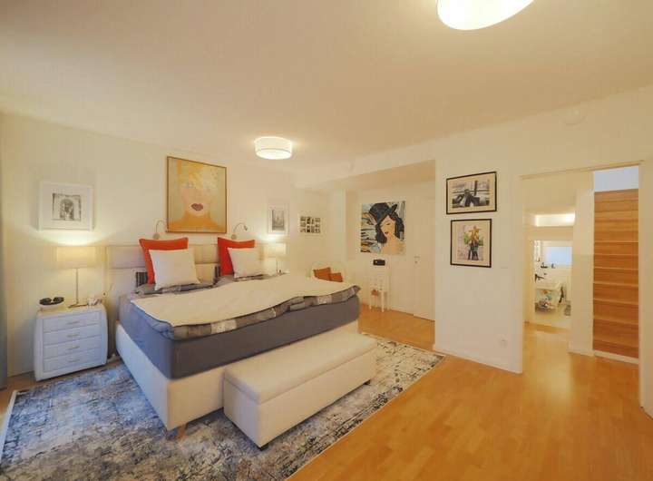 Zwei charmante Reihenhäuser, die durch eine gelungene Verbindung zu einer großzügigen Wohneinheit verschmelzen. Erdgeschoss, Obergeschoss und Dachgeschoss bieten durchdachte Raumzuschnitte auf drei Ebenen plus Keller.