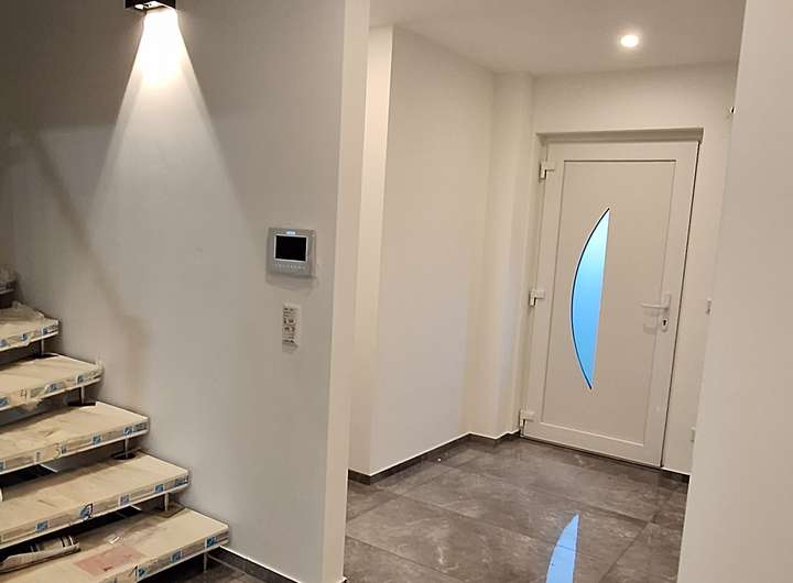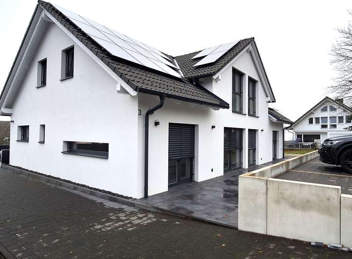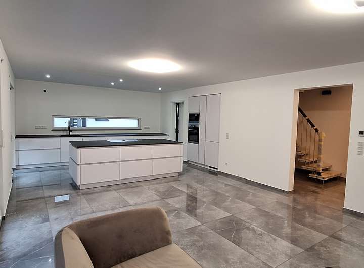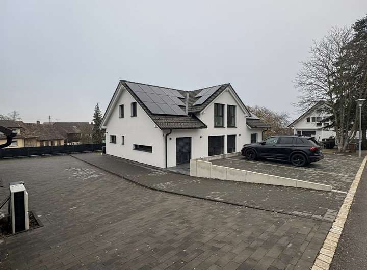 In einer sonnigen und ruhigen Wohnlage von Tengen-OT erwartet Sie ein moderner Neubau mit hochwertiger Innenausstattung und beeindruckendem Weitblick. Die Immobilie kommt Ihnen nahe der Grenze zur Schweiz und ist bestens an das öffentliche Verkehrsnetz angebunden. Innen begeistert die lichtdurchflutete und großzügige Raumaufteilung, die einen offenen Wohn- und Essbereich mit einer neuen Einbauküche als Highlight und Eyecatcher umfasst. Eine Fußbodenheizung sorgt für angenehme Wärme in allen Räumen, während die moderne Heiztechnik mit einer Wärmepumpe und einer Photovoltaikanlage umweltfreundlich ist. Anspruchsvolle Bewohner werden die Glattputzwände und die stilvollen LED-Spots sowie die großformatigen marmorierten Fliesen in den Wohn- und Schlafbereichen sowie auch in den Bädern zu schätzen wissen. Die Schlafräume verfügen über separate Ankleidezimmer. Zudem bietet ein Büroraum mit eigenem Eingang und WC gewerbliche Nutzungsmöglichkeiten. Auf dem Grundstück stehen bis zu 8 KFZ-Stellplätze zur Verfügung.