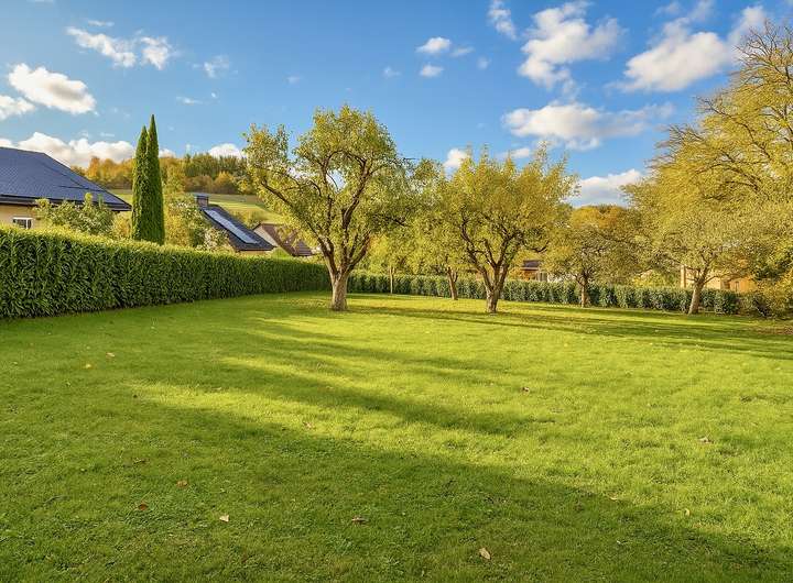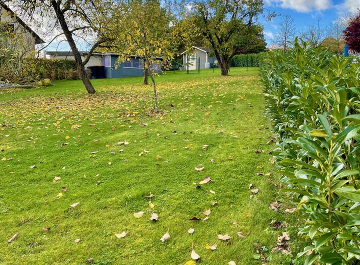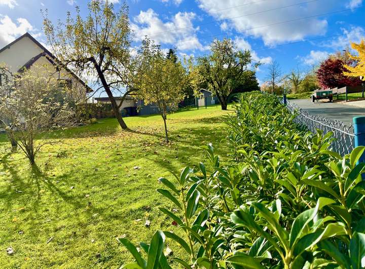 Das Grundstück ist bereits erschlossen. Die Versorgungsanschlüsse für Wasser, Strom und Abwasser sind vorhanden. Glasfaser ist im Ort verlegt und steht somit für schnelles Internet zur Verfügung. Das Grundstück ist eingefriedet mit einer gepflegten Hecke aus Kirschlorbeer, die schon jetzt Privatsphäre schafft.