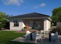 Erleben Sie den Charme eines modernen Bungalows, der mit einer einladenden, geschützten Terrasse punktet - perfekt für entspannte Stunden. Das clevere Baukonzept spricht nicht nur Paare, sondern auch Familien an. Mittelpunkt des Hauses ist der großzügige Wohnbereich mit direktem Zugang zur Terrasse - ideal zum Entspannen. Die geräumige Essküche bietet alles, was das Herz begehrt und wird durch ein Kinder- oder Arbeitszimmer ergänzt. Dieser 100 m² große Bungalow besticht durch optimal genutzten Raum und minimalen Pflegeaufwand. Der kompakte Grundriss sorgt zudem für reduzierte Energiekosten bei Heizung und Kühlung.