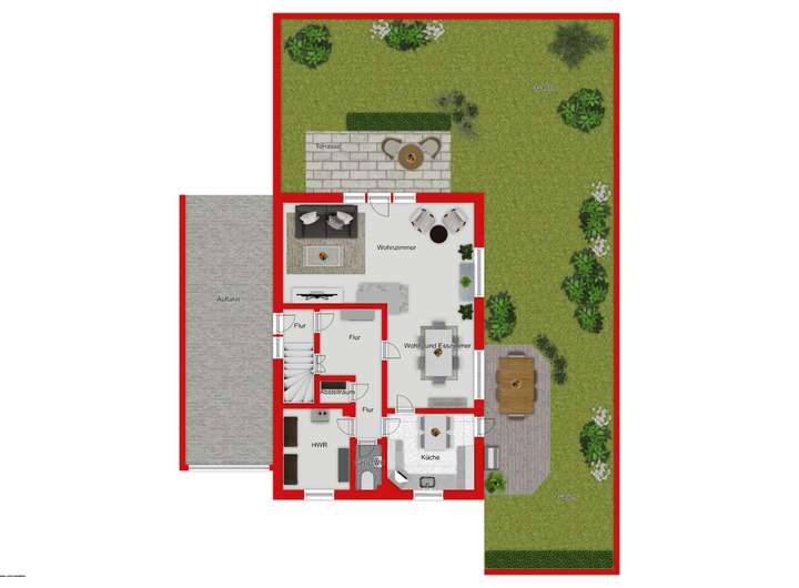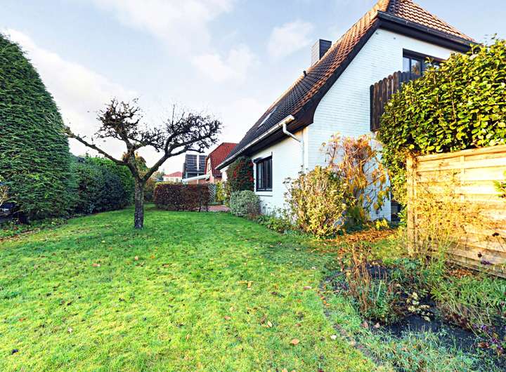Der Garten ist ein echtes Highlight des Hauses. Er ist liebevoll angelegt, bietet Privatsphäre und gleichzeitig viele Möglichkeiten für Gestaltung. Die Terrasse vor dem Wohnzimmer lädt zum Verweilen ein, während die seitliche Fläche Raum für individuelle Gartenideen bietet.