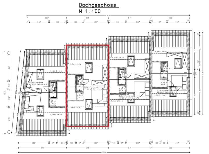 Das Dachgeschoss ist als Elternbereich konzipiert. Hier befindet sich ein großzügiges Schlafzimmer, das durch eine integrierte Ankleide nochmals aufgewertet wird. Ein eigenes Bad mit Dusche ermöglicht ein hohes Maß an Privatsphäre und schafft eine kleine, persönliche Rückzugsoase abseits des Familiengeschehens.