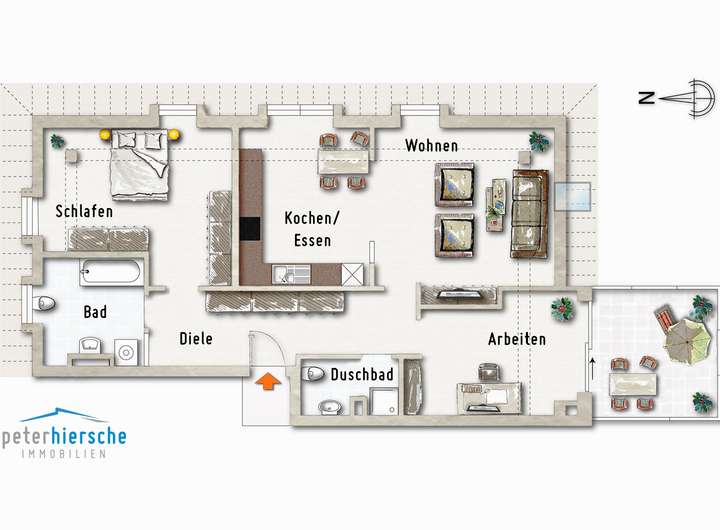 Die Objektdaten sowie sonstige Angaben zum Objekt beruhen auf erteilten Angaben des Auftraggebers/Eigentümers. Es obliegt dem Käufer, diese selbst zu prüfen. Eine Haftung für Richtigkeit, Vollständigkeit und Aktualität dieser Daten und Angaben ist ausgeschlossen. Grafische Darstellungen dienen dazu, Ihnen das Projekt verständlich darzulegen. Diese Darstellungsform erhebt keinen Anspruch auf Detailtreue. Die Möblierung in den Grundrissdarstellungen sowie in den Visualisierungen stellt lediglich einen Einrichtungsvorschlag dar und ist nicht im Angebot enthalten, soweit im Angebot nicht explizit angegeben ist, dass bestimmte Einrichtungsgegenstände im Kaufpreis der Immobilie eingeschlossen sind. Die Größe von Balkonen und Terrassen fließt zur Hälfte in die Wohnfläche mit ein. Flächenangaben sind circa-Angaben und beruhen auf den vom Eigentümer überlassenen Unterlagen, Daten und Informationen. Eine Haftung für deren Richtigkeit und Vollständigkeit kann deshalb nicht übernommen werden. Der Zwischenverkauf ist vorbehalten.