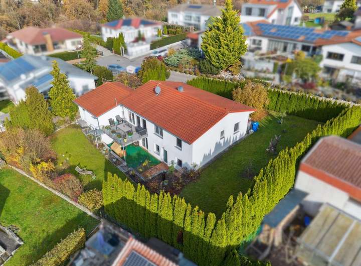 Der grün umrahmte, großzügige Garten rundet das Gesamtbild ab: vor Blicken geschützt ist dieser ein wahres Paradies für Ruhesuchende und Gartenliebhaber. Hier finden Sie Privatsphäre und Entspannung – Ihr ganz persönlicher Rückzugsort im Freien.