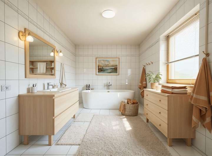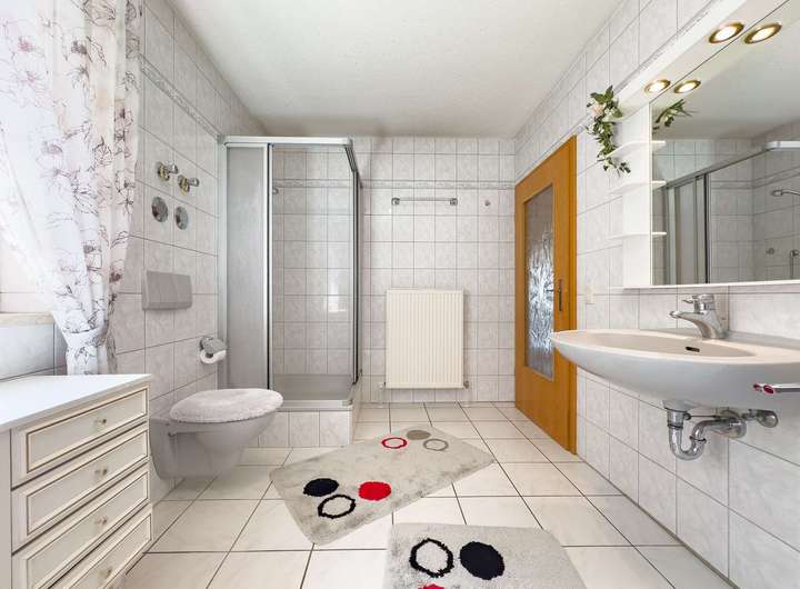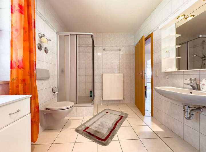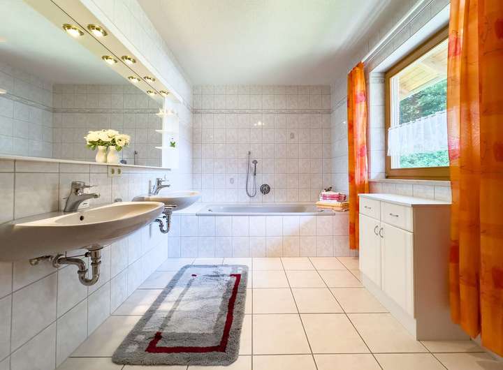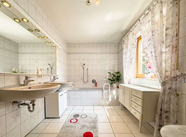 - Tageslichtbad mit Doppelwaschbecken, Badewanne, Dusche und WC