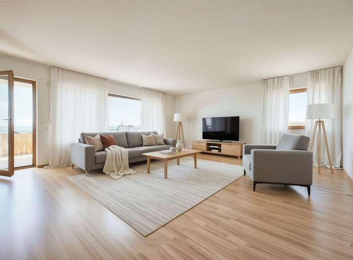 Zwei nahezu identische Hauptwohnungen im Erd- und Obergeschoss mit jeweils rund 135 m² Wohnfläche überzeugen durch durchdachte Grundrisse, helle Räume und große Terrassen bzw. Balkone mit Panoramablick bis in die Alpen.