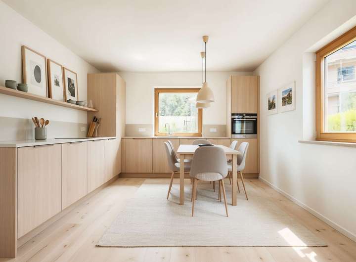 Beide verfügen über Einbauküchen, Holzofenanschluss, Tageslichtbäder mit Wanne und Dusche sowie Gäste-WC – ideale Voraussetzungen für die dauerhafte Vermietung an Familien oder Paare.