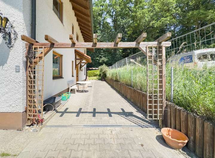 Das Objekt wurde 1994 in solider Bauweise errichtet und steht auf einem 1.048 m² großen, eingefriedeten Grundstück mit direktem Zugang zum Wald – ein seltenes Plus für Mieter, die Ruhe und Natur suchen. Der gepflegte Garten und eine großzügige Doppelgarage runden das Angebot ab.