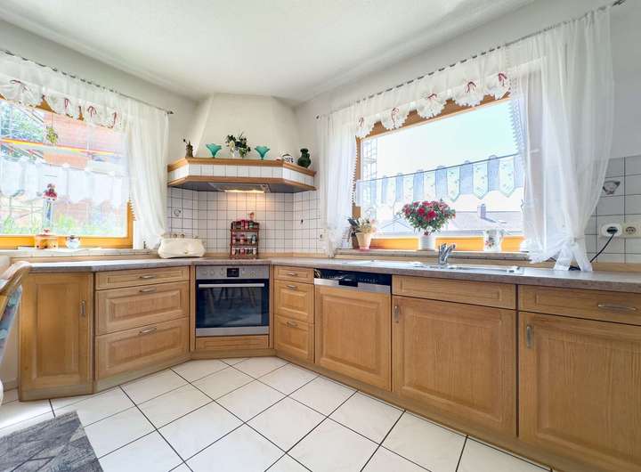 Die Ausstattung umfasst Holzfenster mit 2-fach-Isolierverglasung (teilweise elektrisch betriebene Rollos), eine Öl-Zentralheizung mit fünf 1.250-Liter-Kunststofftanks, gepflegte Böden, Wintergarten, Gartenhaus sowie eine Doppelgarage mit Zugang zum Garten.