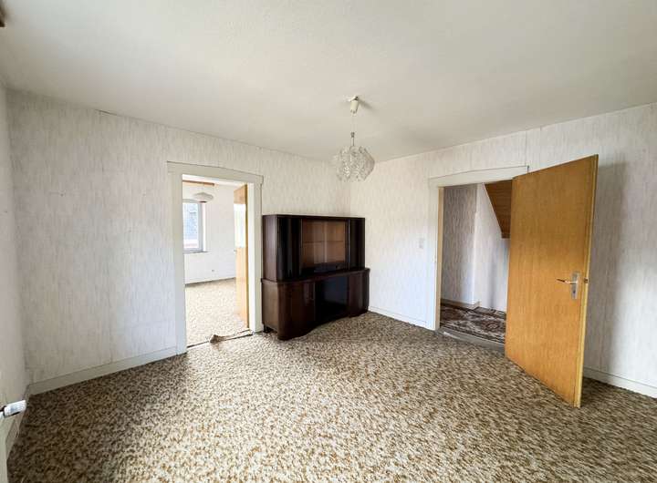 Entdecken Sie dieses solide Einfamilienhaus zum Kauf in Dornburg. Das zweigeschossige, unterkellerte Haus bietet eine Wohnfläche von ca. 115 m² und verfügt über insgesamt fünf Zimmer, darunter ein großes Wohnzimmer, drei geräumige Schlafzimmer und ein zusätzliches Zimmer, das flexibel genutzt werden kann, sowie ein Badezimmer mit Wanne und Dusche und ein separates WC.