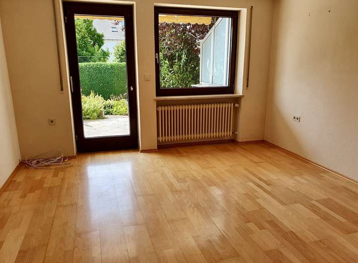 Im Erdgeschoss sind jeweils 4- Zimmer mit Küche und Vorratskammer sowie ein renoviertes Bad und ein separates WC vorhanden. Lichtdurchflutet präsentiert sich das große Wohnzimmer mit Zugang zur Terrasse. So können Sie in vollen Zügen den Garten genießen. Im Obergeschoss ist der Grundriss ähnlich.