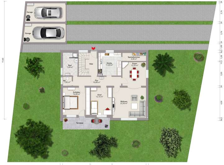 Zwei große Garagen und eine geräumige Hofeinfahrt runden das Angebot ab.