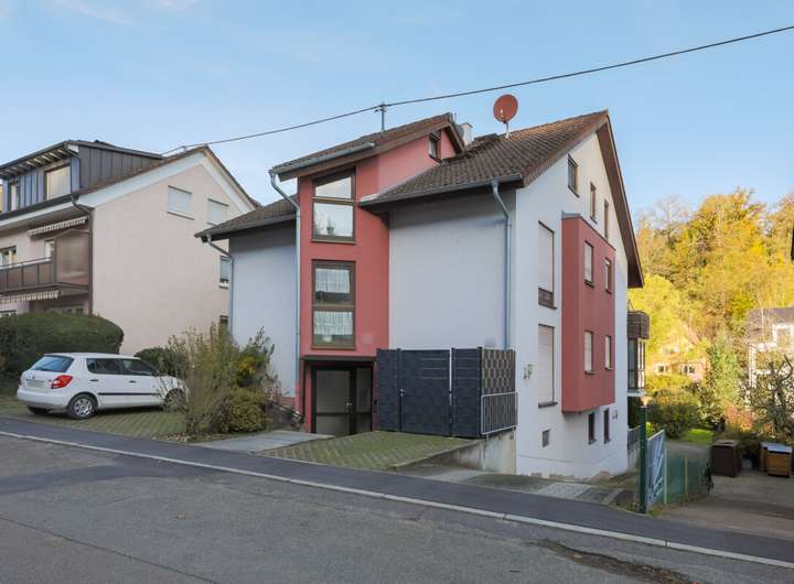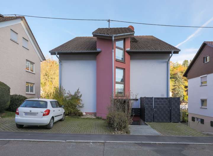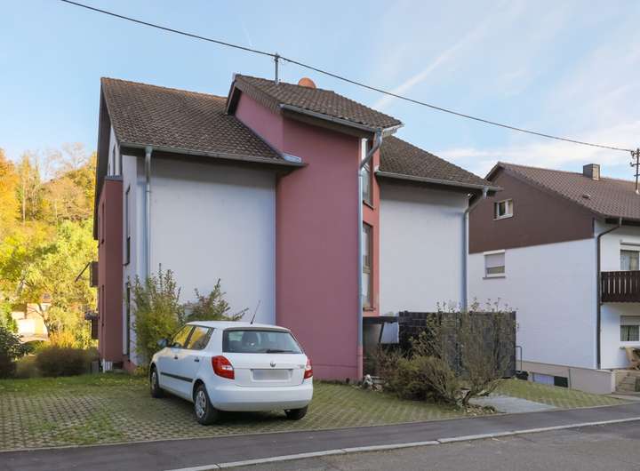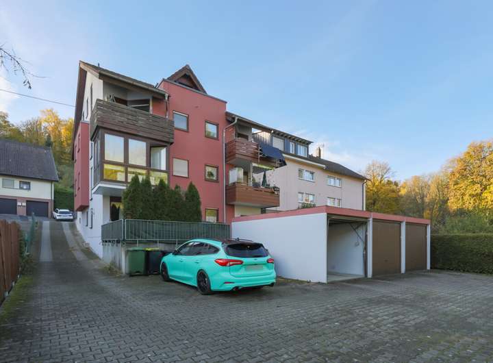 Zur Wohnung gehören außerdem ein abschließbarer Kellerraum, eine Garage sowie ein zusätzlicher Außenstellplatz oberhalb des Hauses.