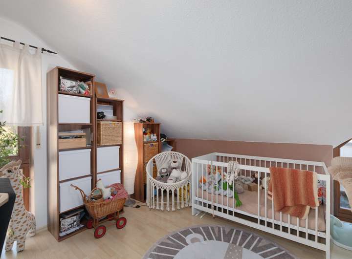 Das Tageslichtbad ist mit Badewanne und Dusche ausgestattet und sorgt für Komfort im Familienalltag. Zwei weitere Zimmer lassen sich flexibel als Kinderzimmer, Schlafzimmer oder Homeoffice nutzen – ganz nach den individuellen Bedürfnissen.