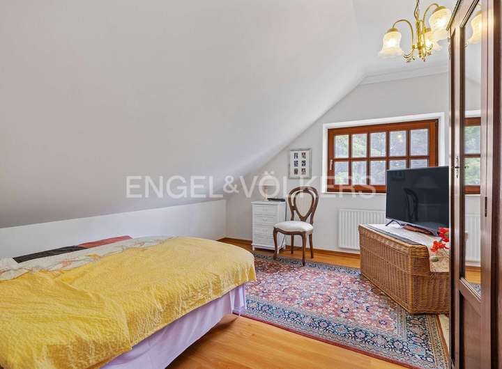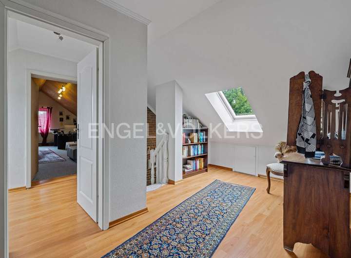 Das Dachgeschoss beeindruckt unter anderem mit seiner großzügigen Zimmeraufteilung. Hier befinden sich drei Schlafzimmer und das hell geflieste Vollbad.
