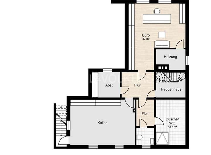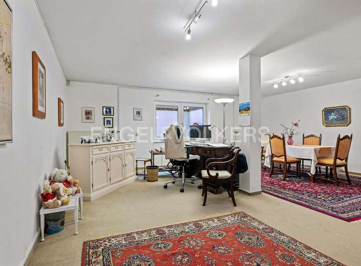 Im Kellergeschoss steht Ihnen ein großzügiges, ca. 42 m² großes Zimmer (aktuell als Büro genutzt) und ein Duschbad zur Verfügung. Große Fenster sorgen auch hier für viel Licht. In den drei weiteren Räumen haben Sie reichlich Abstellfläche. Die Gasheizung aus 2005 ist ebenfalls hier untergebracht.