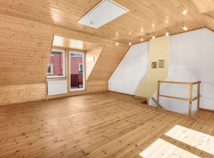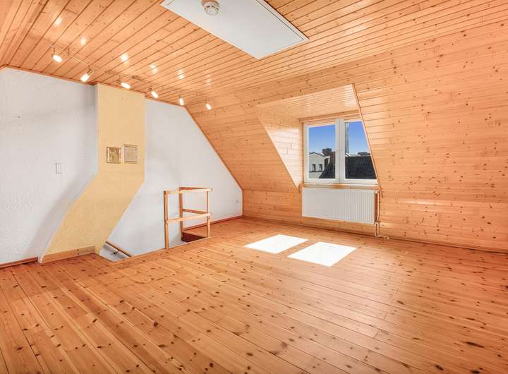 Das Dachgeschoss wurde in dem Jahr 2000 ausgebaut und beeindruckt mit einem ca. 21 m² großen, lichtdurchfluteten Raum. Dieser bietet vielfältige Gestaltungsmöglichkeiten, sei es als Atelier, Hobbyraum oder großzügiges Schlafzimmer. Von hier aus gelangen Sie zudem auf den Balkon, der einen herrlichen Blick ins Freie eröffnet.