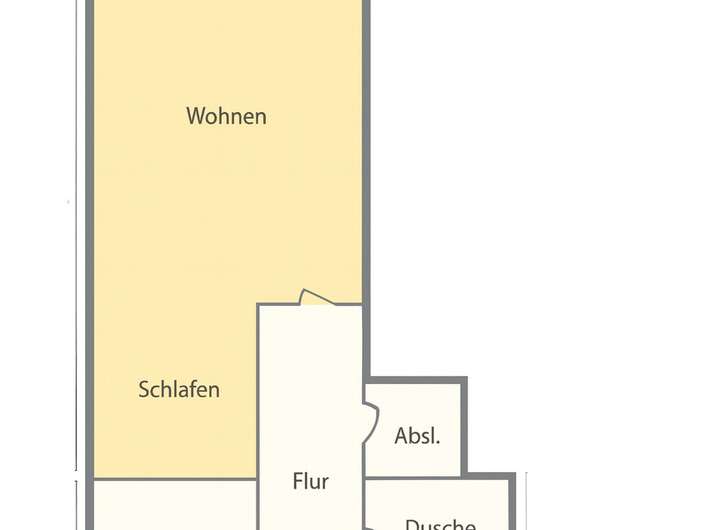 Die Wohnfläche beträgt ca. 45 m² und teilt sich auf in: Eingangsbereich mit Platz für eine Garderobe, Küche ohne Einbauküche, Abstellraum, Bad mit Dusche und WC und Wohn-/Schlafzimmer mit Balkonzugang. Zusätzlich steht eine Nutzfläche von ca. 5 m² im Kellerabteil zur Verfügung.