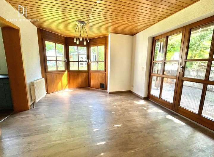 Das Wohnzimmer lädt zu entspannten Stunden vor dem Kamin ein. Vom Esszimmer aus gelangt man in die Küche mit Einbauküche und angrenzender Speisekammer sowie in den gepflegten und großen Garten mit Terrasse, Obstbäumen und angelegten Blumenbeeten.