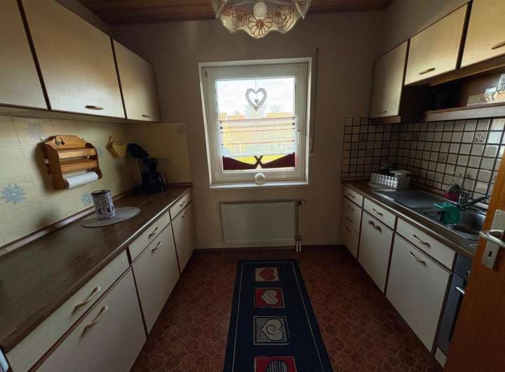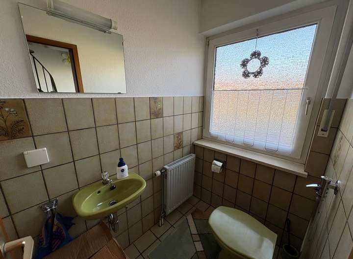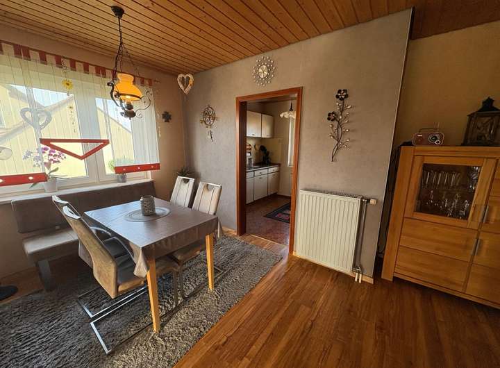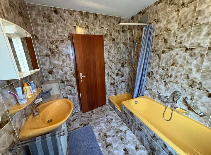 Die Küche ist funktional gestaltet und grenzt direkt an das Esszimmer, was kurze Wege garantiert. Das Badezimmer ist mit einer Badewanne ausgestattet und bietet genügend Platz. Zusätzlich gibt es ein praktisches Gäste-WC.
